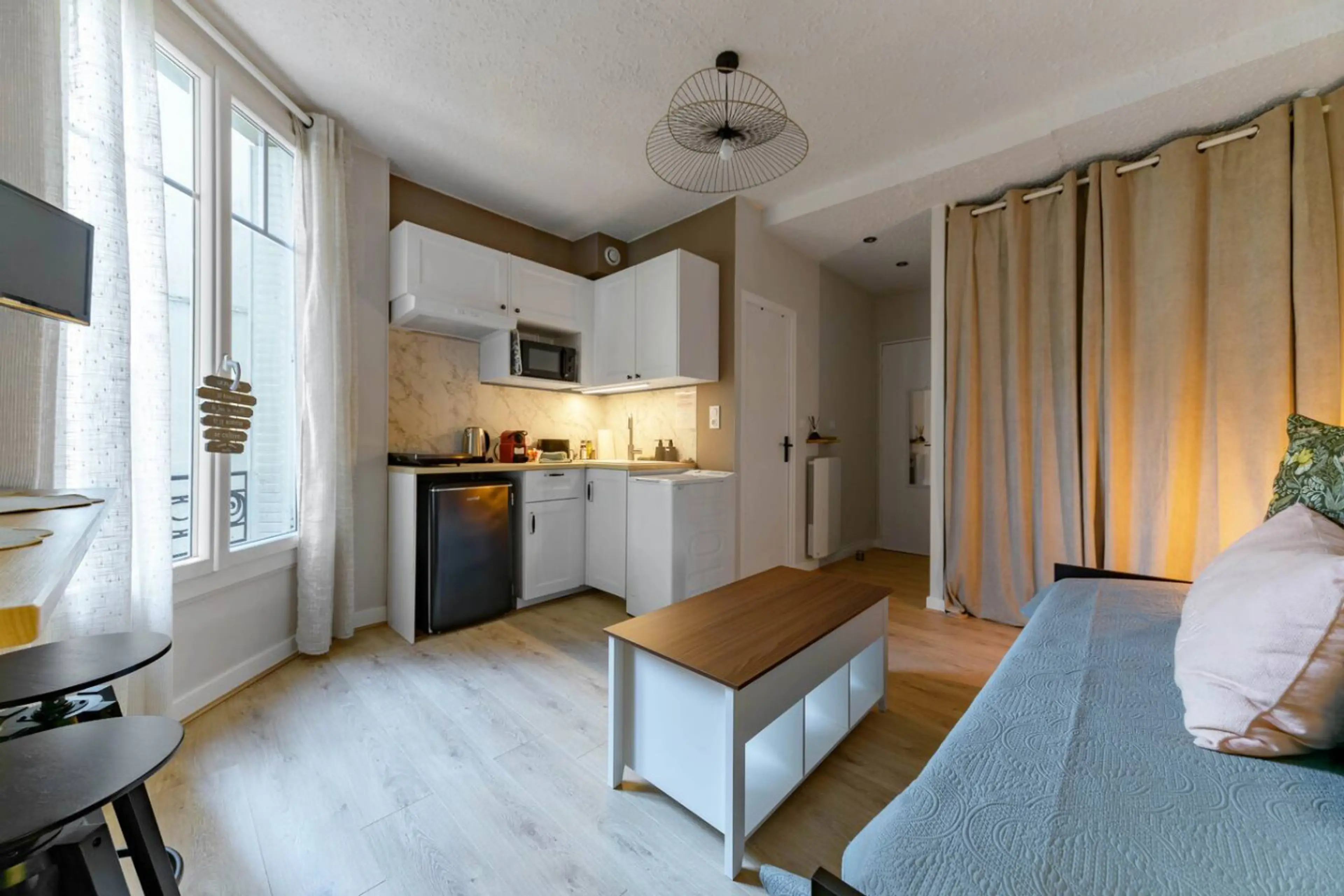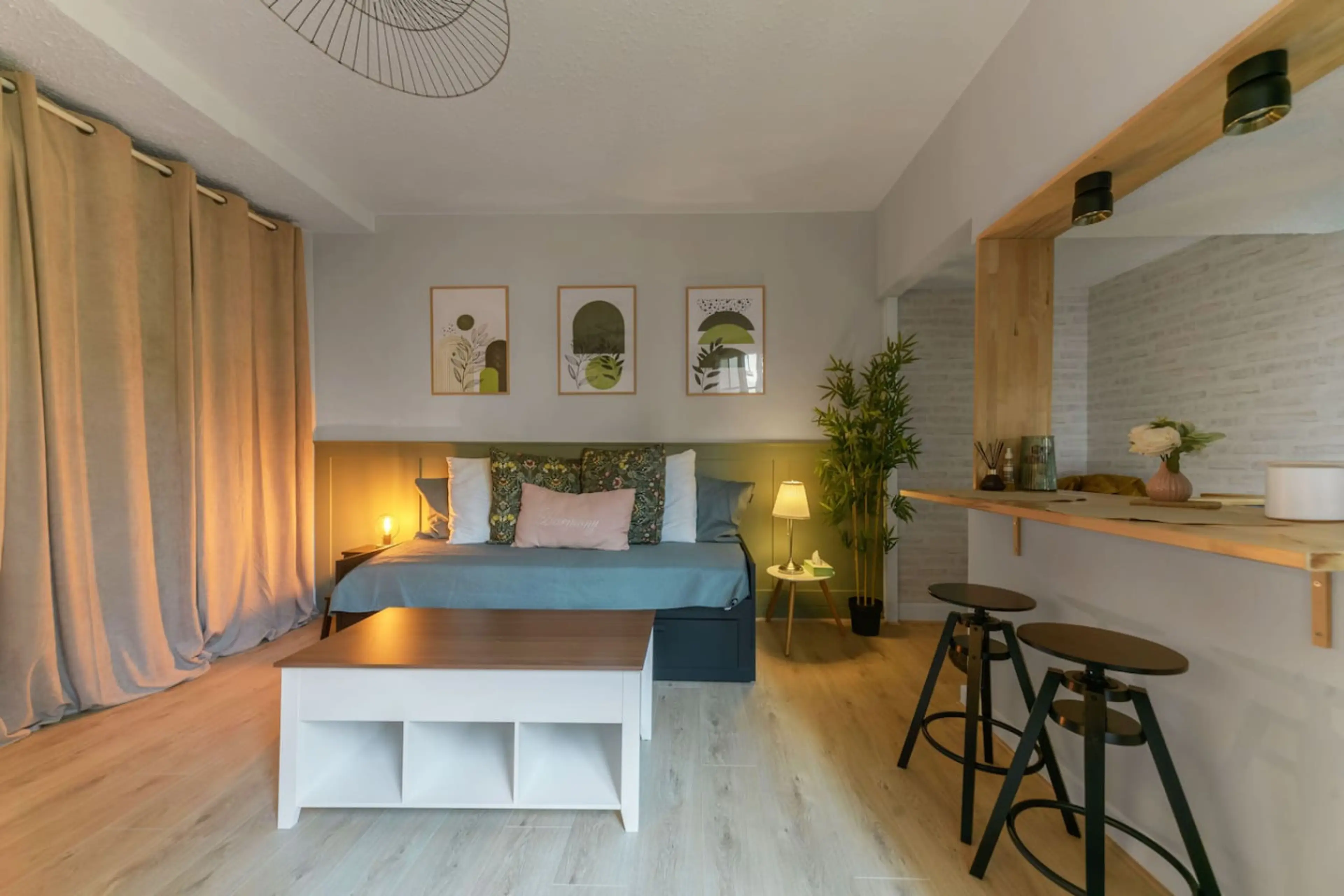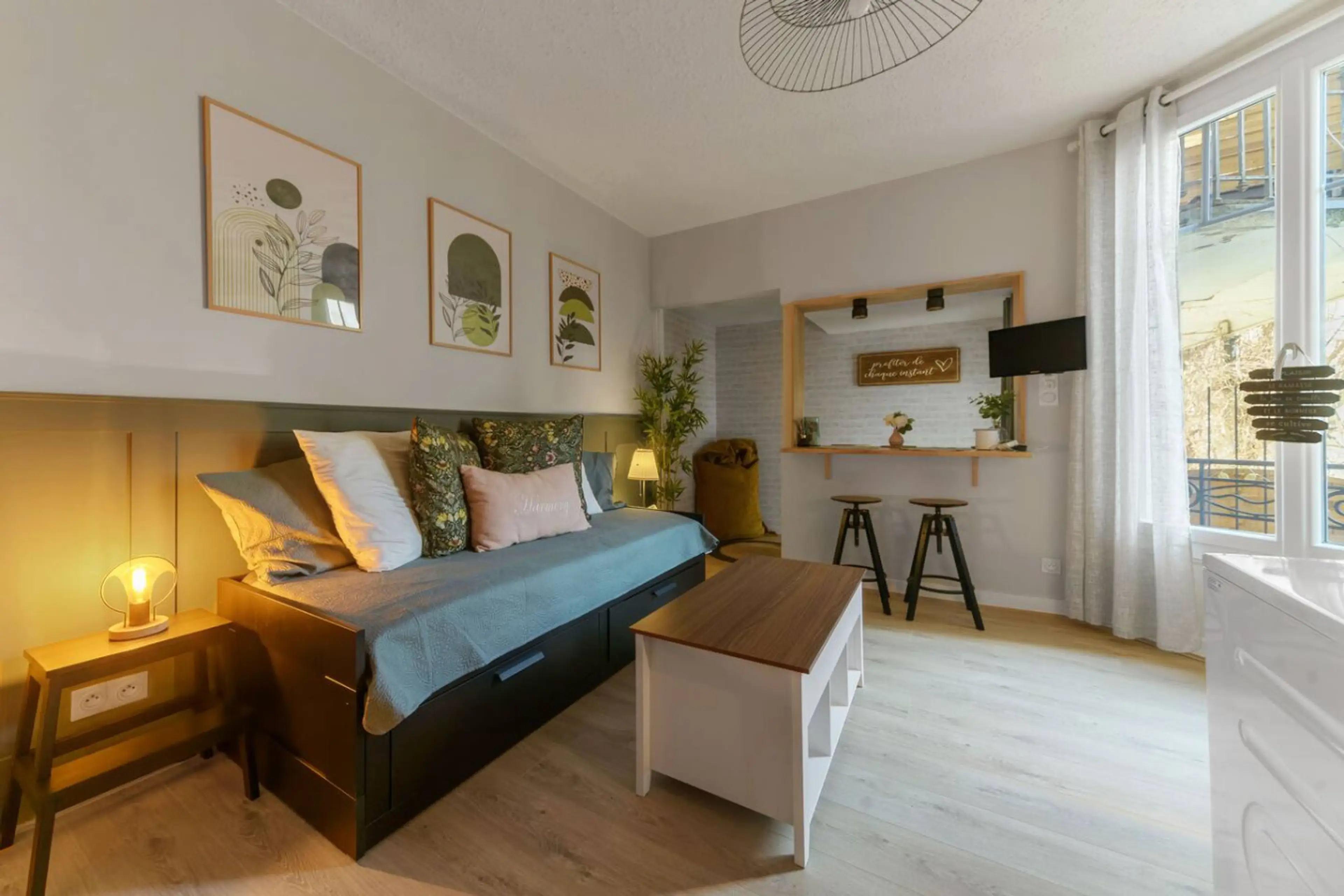 Studio design et confortable de près de 22m2 au cœur du centre ville. Il est situé au 1er étage d'un immeuble de style donnant sur le Parc des Sources. Il est entièrement équipé et offre tout le confort nécessaire pour votre séjour : un canapé-lit confortable, une cuisine équipée, Wifi fibre, Mac...